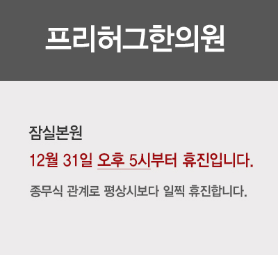 토요일 : 오전 9시 ~ 오후 3시 | 휴진일 : 수요일, 일요일, 공휴일